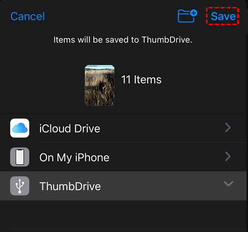 4. Wählen Sie die externe Festplatte, die ThumbDrive/USB-Stick heißt.