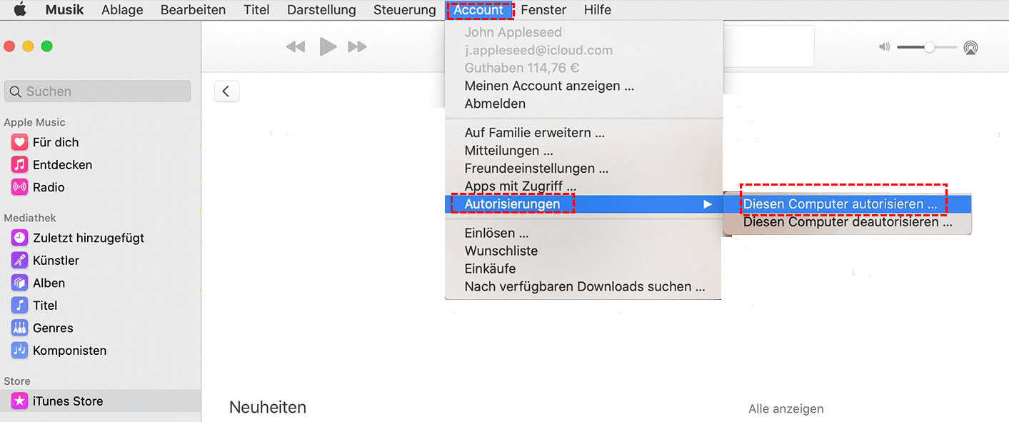 Schritt 3. Klicke auf: Account > Autorisierungen > Diesen Computer autorisieren ...