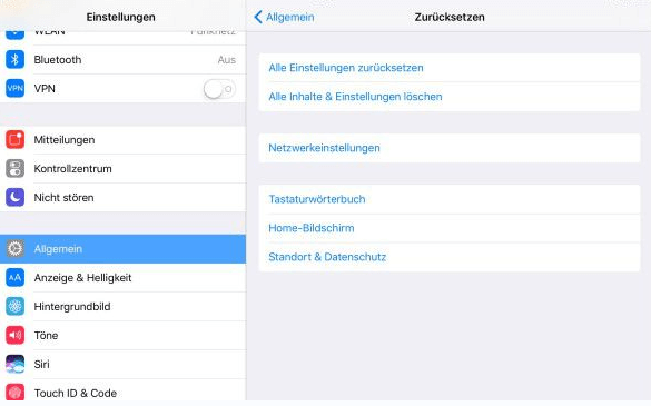 Methode 4. iPad auf Werkseinstellungen zurücksetzen