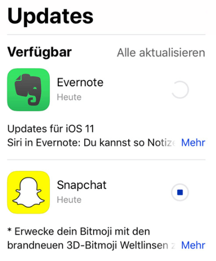 Genau wie ich in Teil 1 erwähnt habe, müssen Sie auch nach App-Updates suchen, um das Problem zu vermeiden, dass sich Ihr iPad ständig ein- und ausschaltet. Gehen Sie zu App-Store > Scrollen Sie nach unten und tippen auf Updates > Tippen Sie auf Update, um eine einzelne App zu aktualisieren. Sie können auch oben rechts auf dem Bildschirm auf Alle aktualisieren tippen, um alle Apps auf einmal zu aktualisieren.