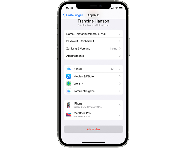 Öffnen Sie dazu die „Einstellungen“ auf Ihrem iPhone und iPad, tippen Sie auf „[Ihr Profil]“, dann sehen Sie Ihre „Apple ID“, prüfen Sie, ob es sich um dasselbe Konto handelt, wenn nicht, melden Sie sich ab und melden Sie sich bei dem Konto mit den Fotos an, die Sie synchronisieren möchten.