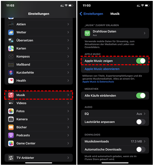 3. Apple Music anzeigen einschalten