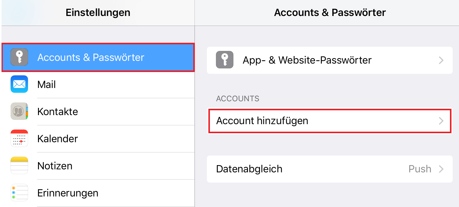 Die Einstellungen von iPhone/iPad bieten eine einfache Möglichkeit, Daten mit E-Mails zu synchronisieren.