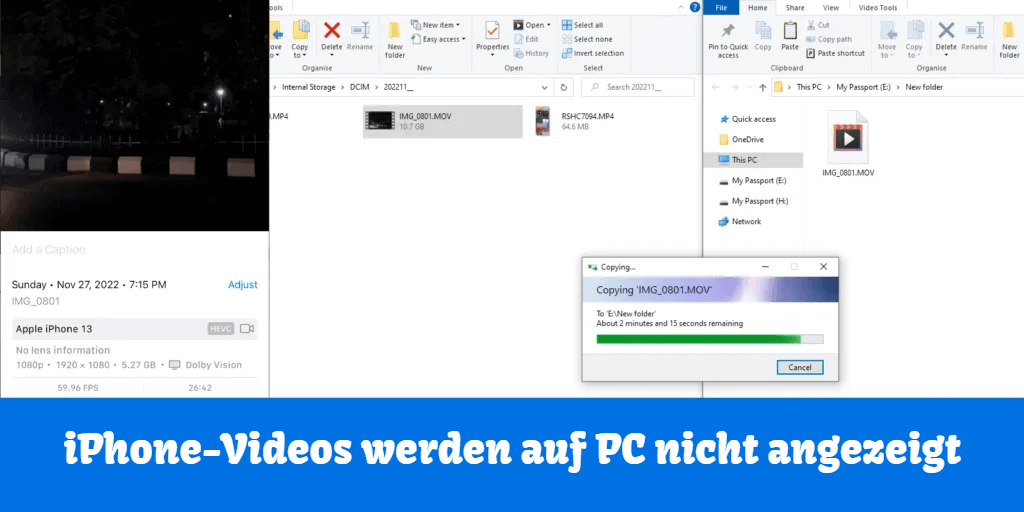 Große iPhone-Videos werden auf PC nicht angezeigt