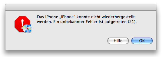 ? Veraltete Software/System – Die iOS- und iTunes-Versionen sind veraltet. Daher konnten einige iTunes-Programme nicht erfolgreich ausgeführt werden.