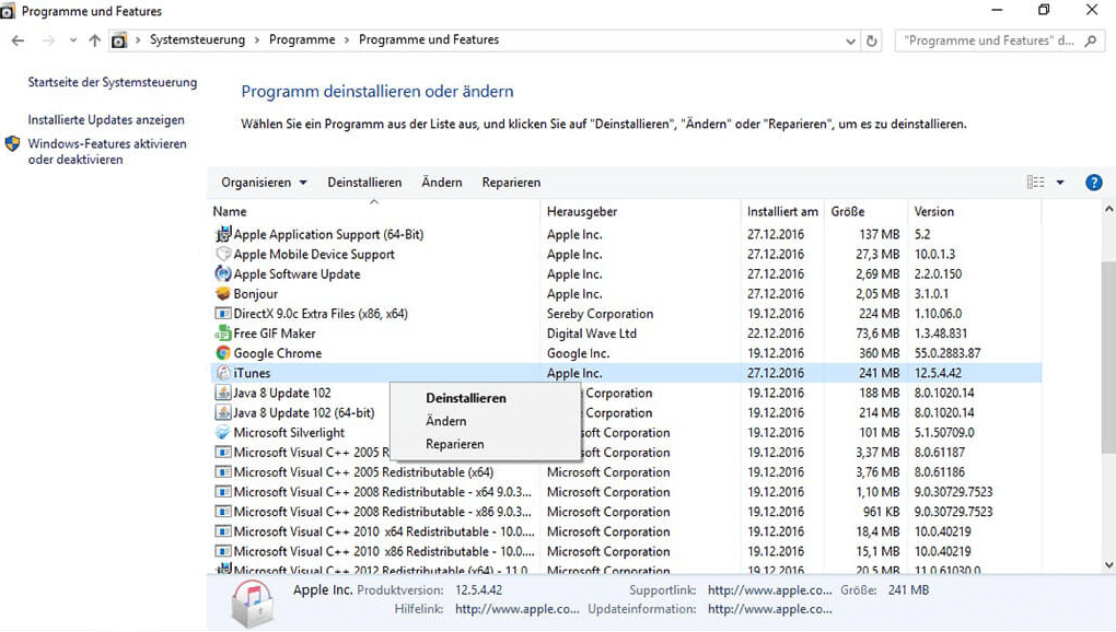 1. iTunes deinstallieren: