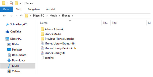 ☀ Hinweis: Es wird empfohlen, den Ordner von iTunes und nicht nur die Mediendateien zu kopieren, da dies bei der Wiederherstellung der iTunes-Mediathek sehr nützlich ist.
