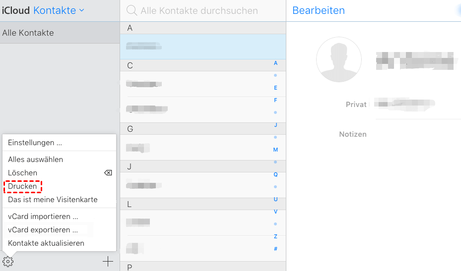Methode 3. Kontakte vom iPhone drucken aus iCloud
