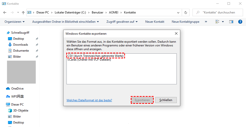 Kontakte in das CSV-Format exportieren
