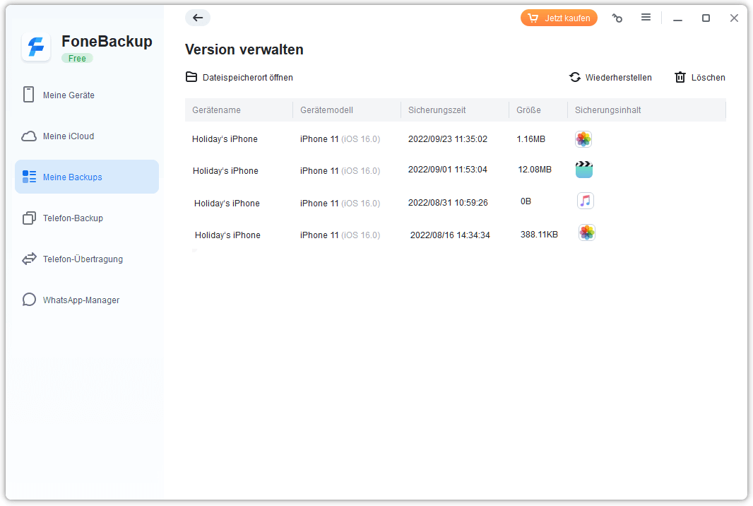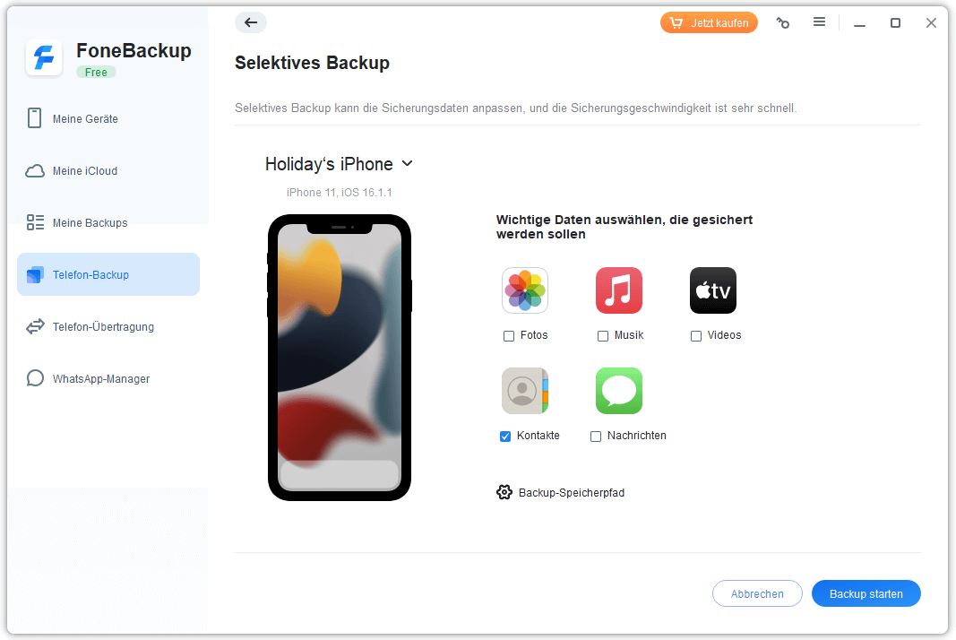 Mit dieser Methode können Sie viele oder alle Kontakten vom iPhone auf den Computer oder auf neues iPhone gratis exportieren. Das Programm namens FoneBackup ermöglicht eine einfache Vorschau und Auswahl der zu übertragenden Kontakte. Zusätzlich unterstützt es die Sicherung von Nachrichten, Fotos usw.