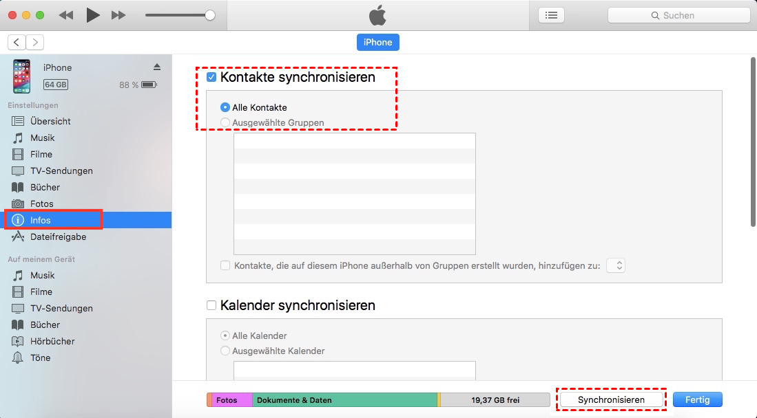 Weg 2. Kontakten vom iPhone zu Outlook über iTunes exportieren