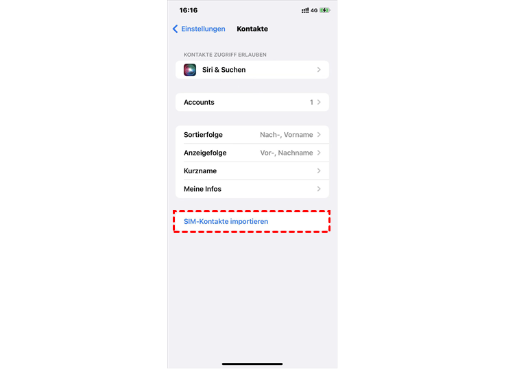 ✍ Hinweis: Das iPhone erlaubt nur das Speichern von Kontakten im internen Speicher des iPhones und Sie können keine Kontakte auf die SIM-Karte kopieren. Wenn sich keine Kontakte auf der SIM-Karte befinden, versuchen Sie die anderen 4 oben genannten Möglichkeiten, um Kontakte auf das neue iPhone zu übertragen.