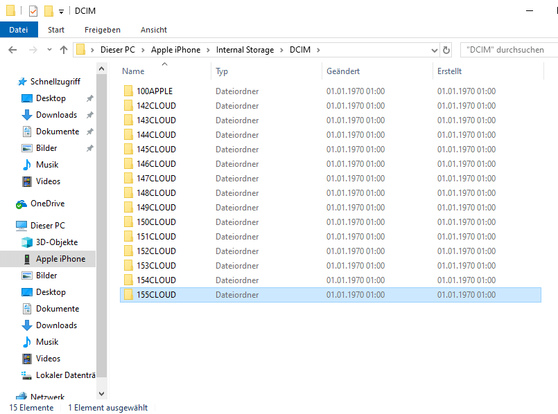 Allerdings müssen Sie iTunes auf Ihrem PC installieren. Da die Fotodaten in einer Reihe angeordnet sind, ist es schwierig, eine große Anzahl von Fotos zu finden. Außerdem wird diese Methode nicht empfohlen, da es häufig zu Fehlern kommt, wenn Fotos vom iPhone auf PC übertragen werden.