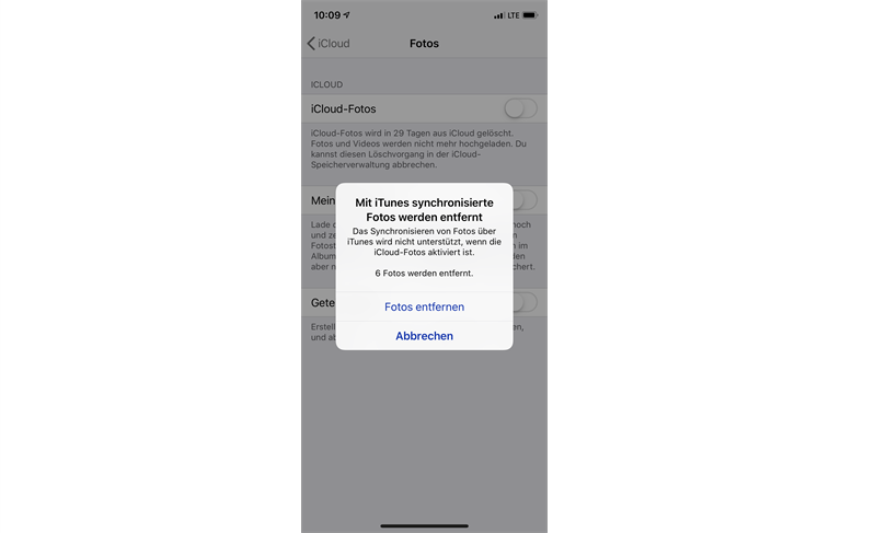 Mit iTunes können Sie Fotos schnell mit dem iPhone synchronisieren, aber sie sind auf dem iPhone nicht so sicher. Wenn Sie die iCloud-Fotos aktivieren, werden Sie gewarnt, dass die mit iTunes synchronisierte Fotos werden entfernt anzeigen.