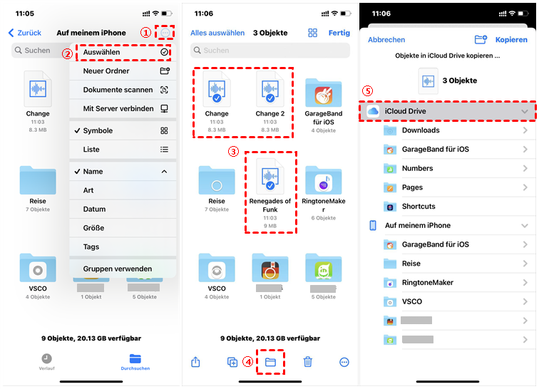 Schritt 1. MP3-Dateien auf iCloud Drive verschieben