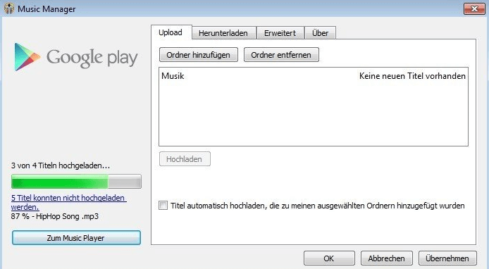 Wie kann man mit Google Play Music Manager Musik von PC auf iPhone übertragen?