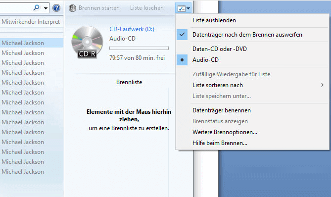 Schritt 2. Musik mit Windows Media Player auf CD brennen