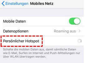 Auf Ihrem iPhone: Gehen Sie zu: Einstellungen > Mobiles Netz. Aktivieren Sie Persönlicher Hotspot, dann gehen Sie zurück zu Einstellungen und tippen auf Bluetooth.