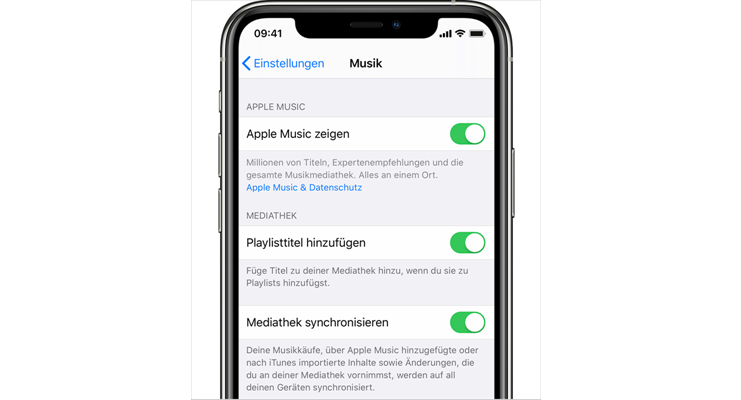 Wenn Sie Apple Music abonniert haben, können Sie die Option „Mediathek synchronisieren“ in den Einstellungen aktivieren, um die gesamte Musikbibliothek einfach von iPad zu iPad zu synchronisieren. Es handelt sich um eine kostenpflichtige Option. Wenn Sie Apple Music nicht abonniert haben, wird die Option „Mediathek synchronisieren“ nicht angezeigt.