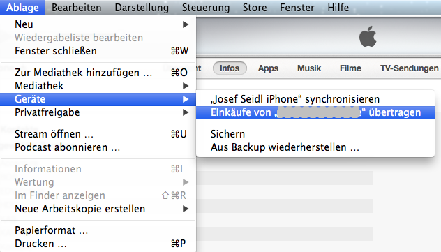 Aus urheberrechtlichen Gründen können Sie mit dem offiziellen iOS-Datenverwaltungstool iTunes nur gekaufte Objekte von einem Gerät auf ein anderes übertragen.