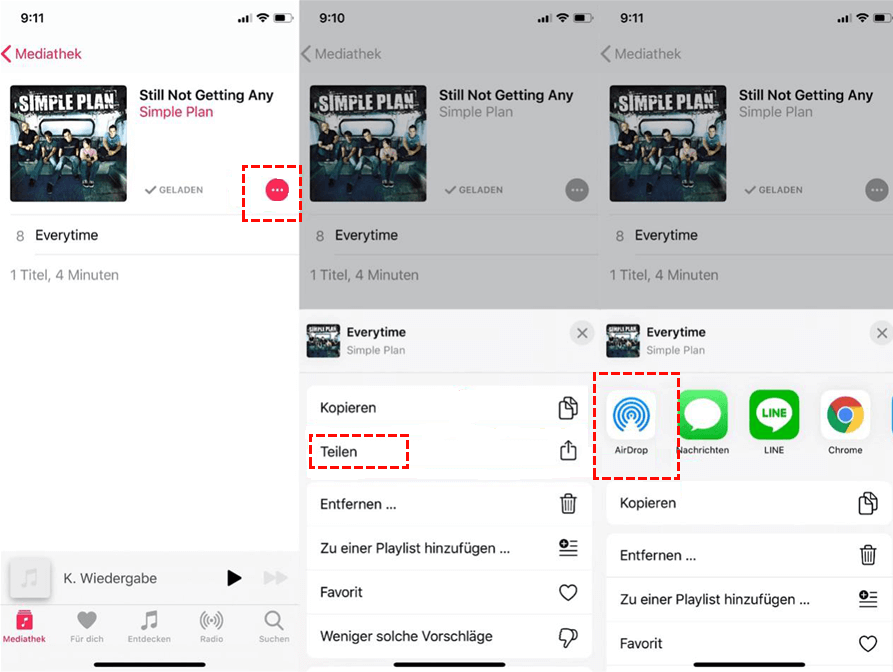 Musik von iPhone zu iPhone per AirDrop übertragen