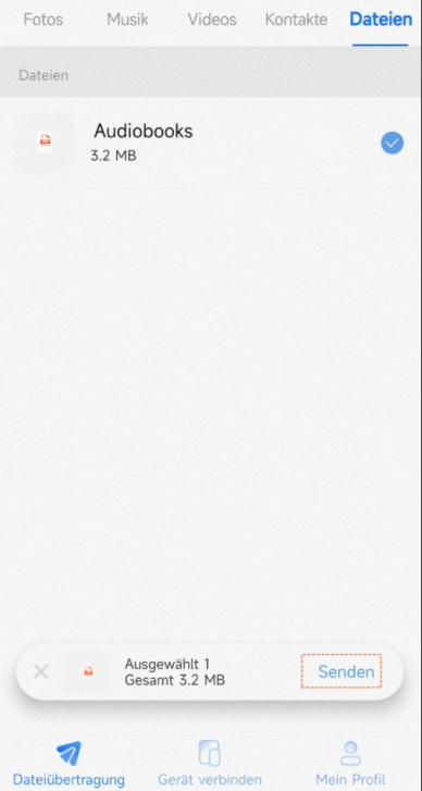 Schritt 4. Überprüfen Sie die gewünschten PDF-Dateien > Tippen Sie auf Senden, um die Übertragung zu starten.