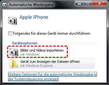 Schritt 1. Schließen Sie Ihr iPhone über USB an den PC an > Wenn das AutoPlay-Fenster erscheint, klicken Sie auf Bilder und Videos importieren.