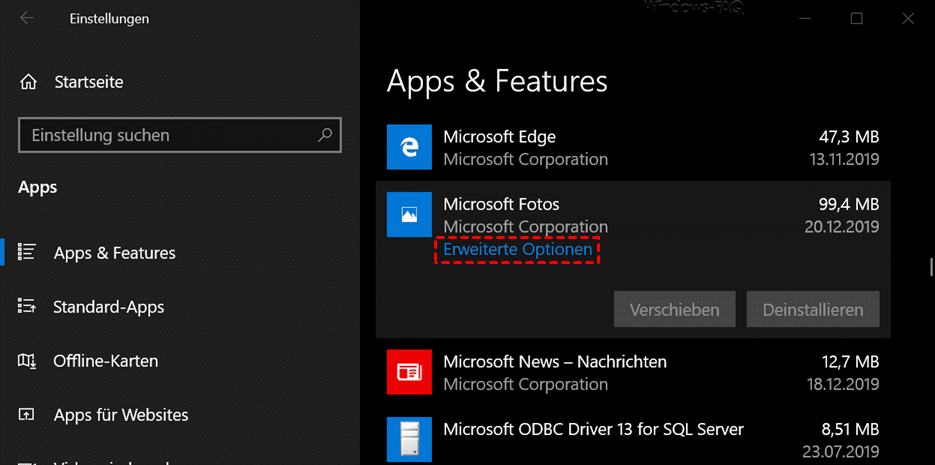 Schritt 2. Wählen Sie Microsoft Fotos aus und klicken Sie auf den versteckten Link „Erweiterte Optionen“.