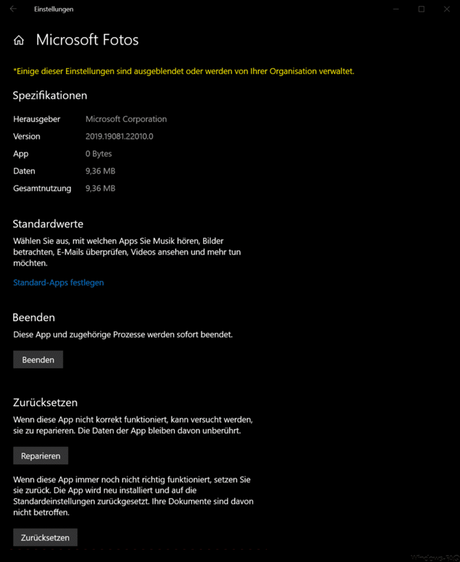 Zurücksetzen und Reparieren der Windows Fotos-App