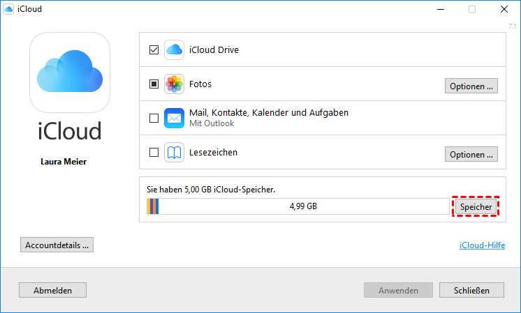 Schritt 1. Öffnen Sie iCloud für Windows und klicken Sie auf Speicher.
