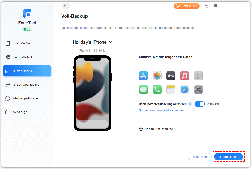Mit AOMEI FoneBackup Voll-Backup Ihres iPhones erstellen