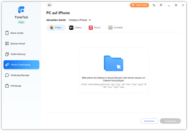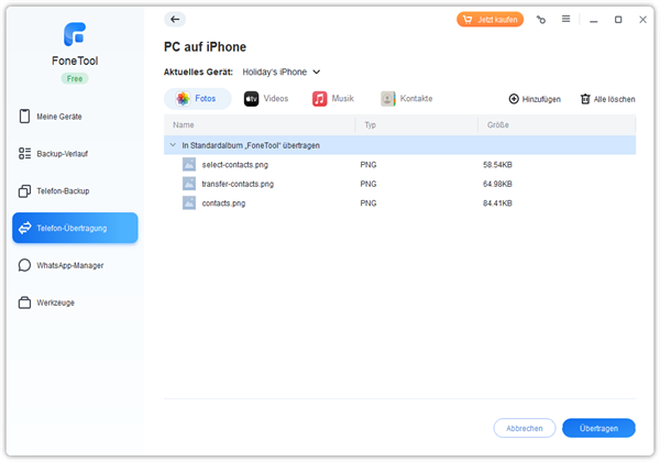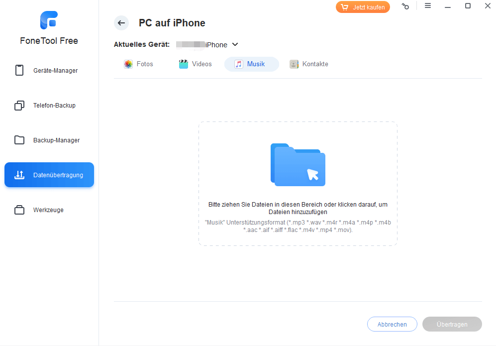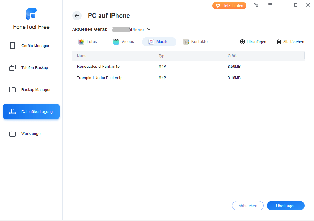 Sie sind mit iTunes nicht zufrieden? Mit FoneTool können Sie einfach alle heruntergeladene Musik vom Computer aufs iPhone sowie vom iPhone auf den PC übertragen.