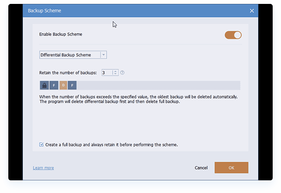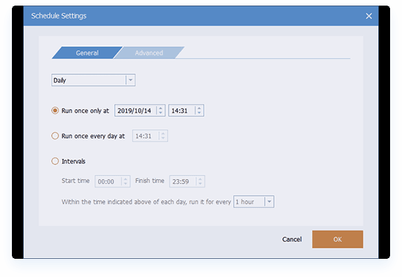 Richten Sie einen Zeitplan für die automatische Ausführung von Sicherungen täglich, wöchentlich, monatlich oder bei Auftreten eines Ereignisses und USB-Anschluss ein. Außerdem können Sie Dateien in Echtzeit synchronisieren.