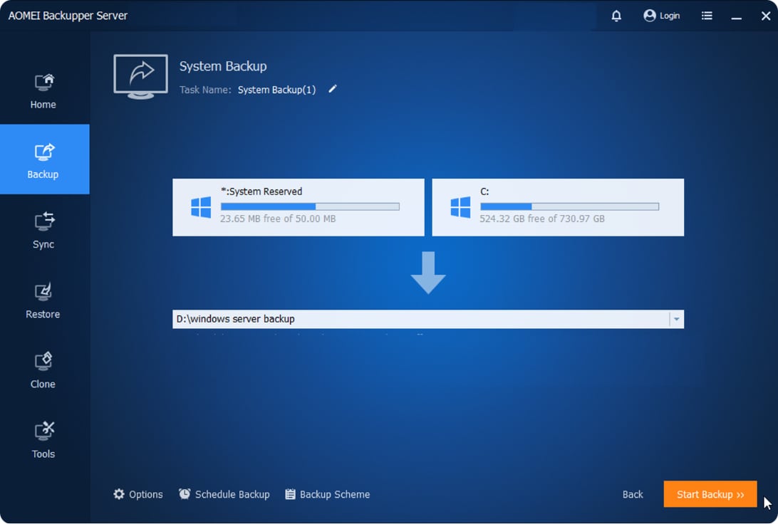 Um Windows Server 2022/2016/2012/2008/2003 einfach zu sichern, kann AOMEI Cyber