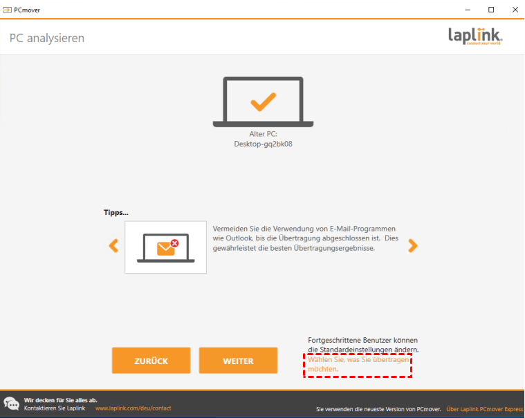 4. Klicken Sie auf „Wählen Sie, was Sie übertragen möchten“ neben der Schaltfläche „Weiter“.