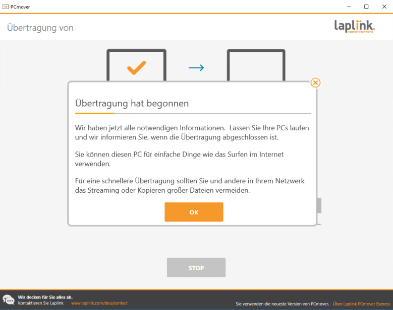 Wenn Sie ein Laplink USB-Kabel oder Ethernetkabel haben, schließen Sie es bitte an Ihre Computer an, um Dateien ohne Internet zu übertragen.