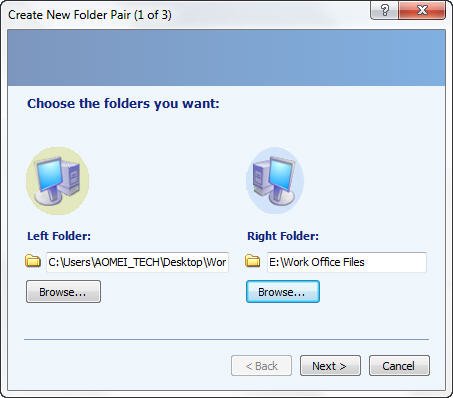 Schritt 3. Wählen Sie die Ordner aus, die Sie synchronisieren möchten, darunter den linken Ordner für den Quellordner und den rechten Ordner für den Zielordner. Klicken Sie zur Auswahl auf Browse.