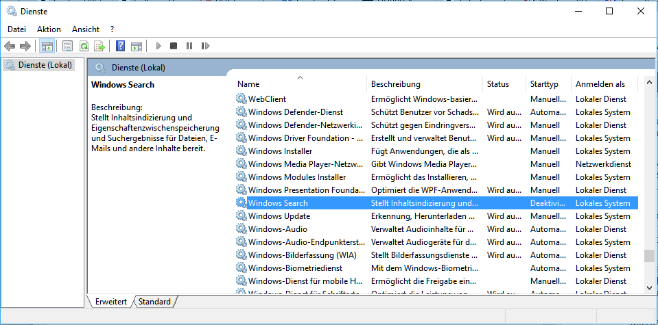 Schritt 3. Im sich nun öffnenden Fenster sucht ihr über den Reiter „Dienste (Lokal)“ den Eintrag „Windows Search“ und macht einen Doppelklick auf diesen.