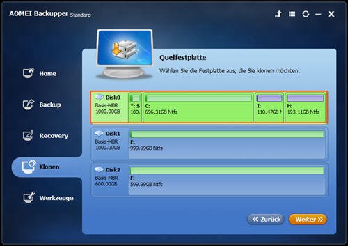 Schritt 2. Wählen Sie die alte Festplatte als Quellfestplatte aus.