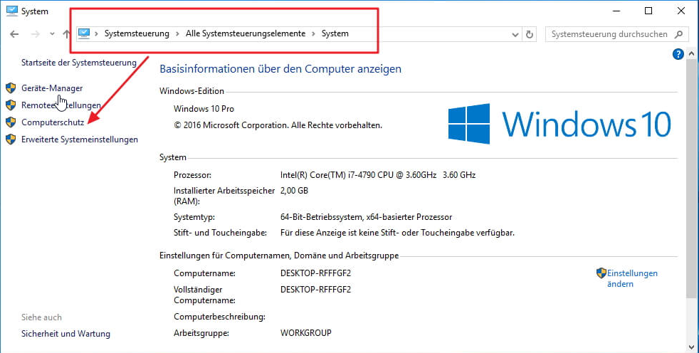 Schritt 3. Klicken Sie dann auf den Link Erweiterte Systemeinstellungen auf der linken Seite.