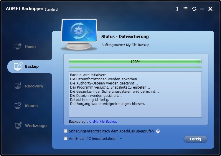 Wenn Sie also auf internen Laufwerken sichern oder bestimmte Dateien sichern möchten, sollten Sie AOMEI Backupper verwenden.