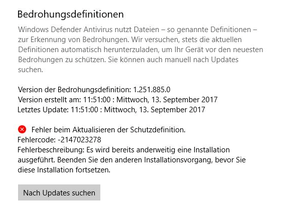 Gelöst: Fehler beim Aktualisieren der Schutzdefinition unter Windows 10