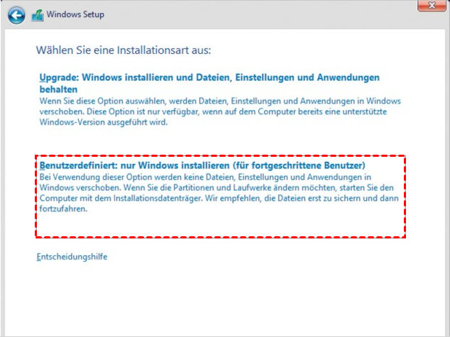 Schritt 4. Wählen Sie Benutzerdefiniert: nur Windows installieren (für fortgeschrittene Benutzer).
