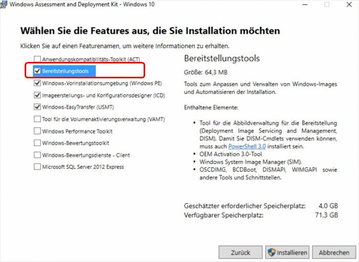 3. Laden Sie das neueste Windows Assessment and Deployment Kit (ADK) für Windows 10 herunter und installieren Sie es. Sie müssen nur die Bereitstellungstools zur Installation auswählen.
