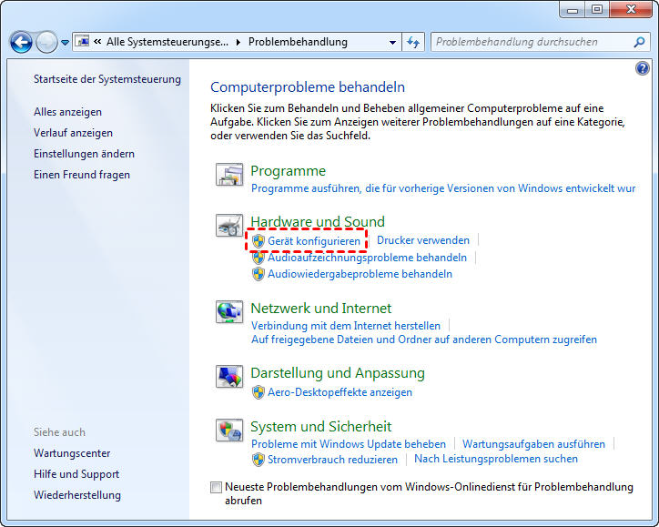 2. Klicken Sie auf Gerät konfigurieren unter Hardware und Sound.