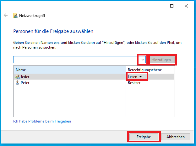 *Lesen/Schreiben: Benutzer dürfen die freigegebenen Dateien anzeigen, öffnen, ändern und löschen.