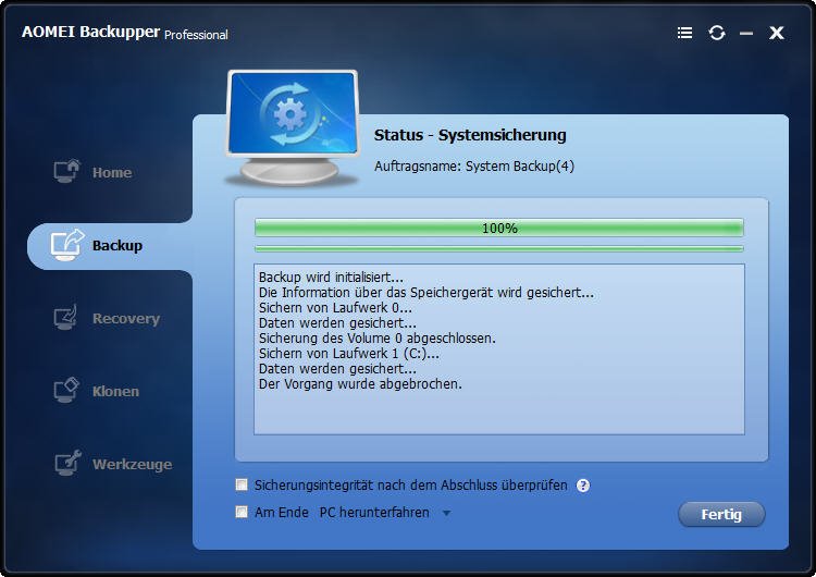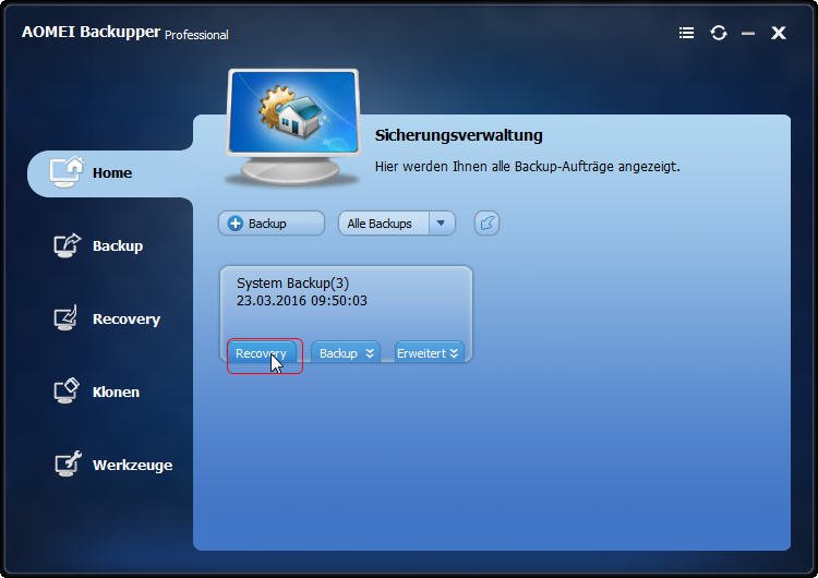 Windows 10 System sichern und wiederherstellen mit AOMEI Backupper