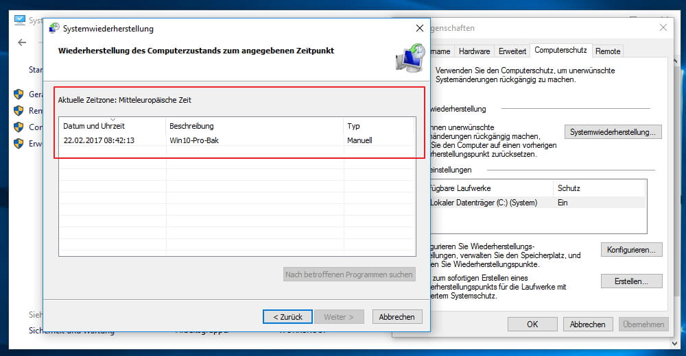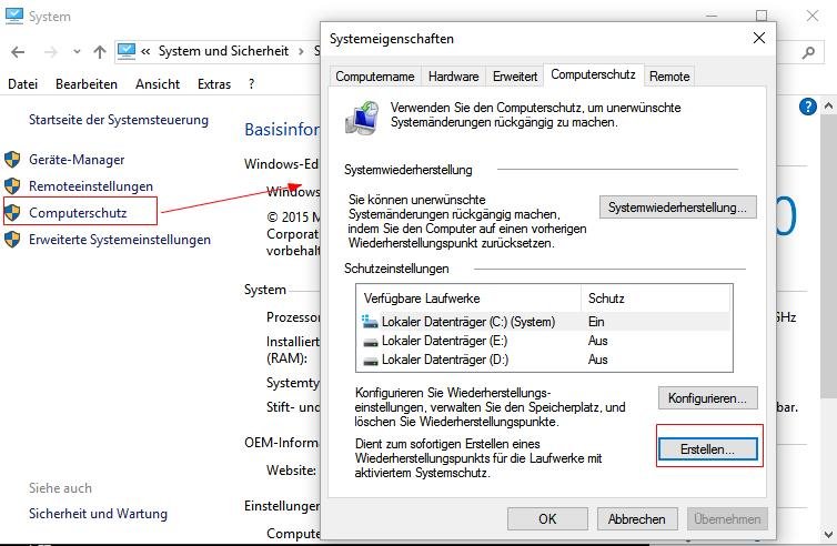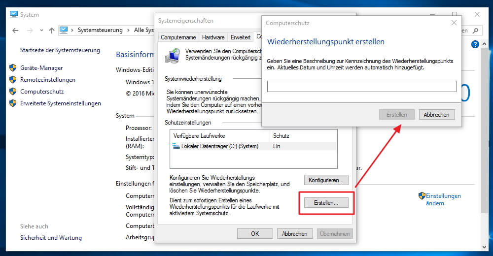 - 1. Wie kann man einen Systemwiederherstellungspunkt in Windows 10 erstellen?
