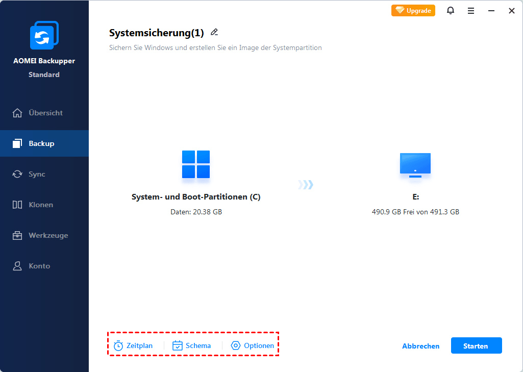 So erstellen Sie eine Systemabbildsicherung mit AOMEI Backupper: