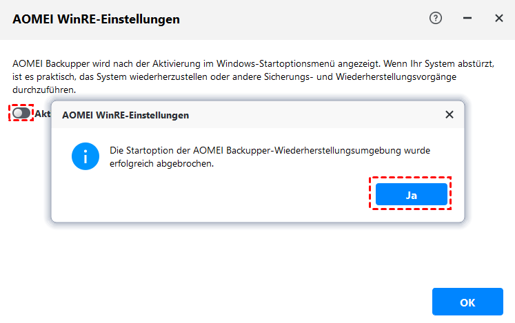 Dann könnten Sie in Erwägung ziehen, eine Startption der Wiederherstellungsumgebung mit AOMEI Backupper Professional hinzuzufügen. Es funktioniert genau wie ein bootfähiges Medium und Sie benötigen weder einen USB-Stick noch eine CD/DVD.